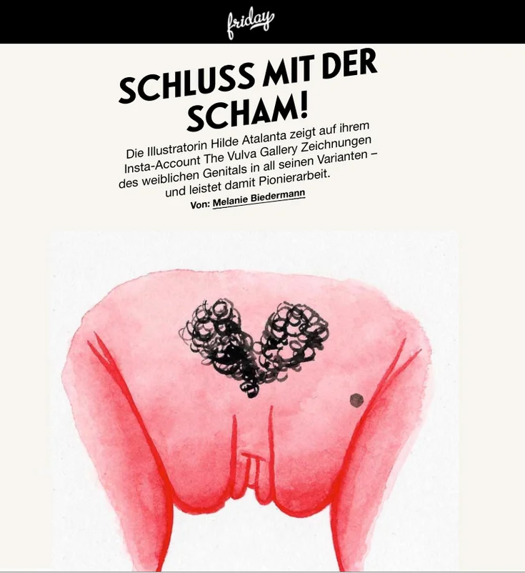 Yay! The beautiful platform Pink Things Mag wrote a feature about The Vulva Gallery! Pink Things Mag is a magazine, online gallery and Instagram feed dedicated to all things pink - giving a voice to emerging artists. It's curated by artist, founder and editor in chief Sarah Sickles. Thank you very much Sarah, for sharing my vulva/body positivity with the world!